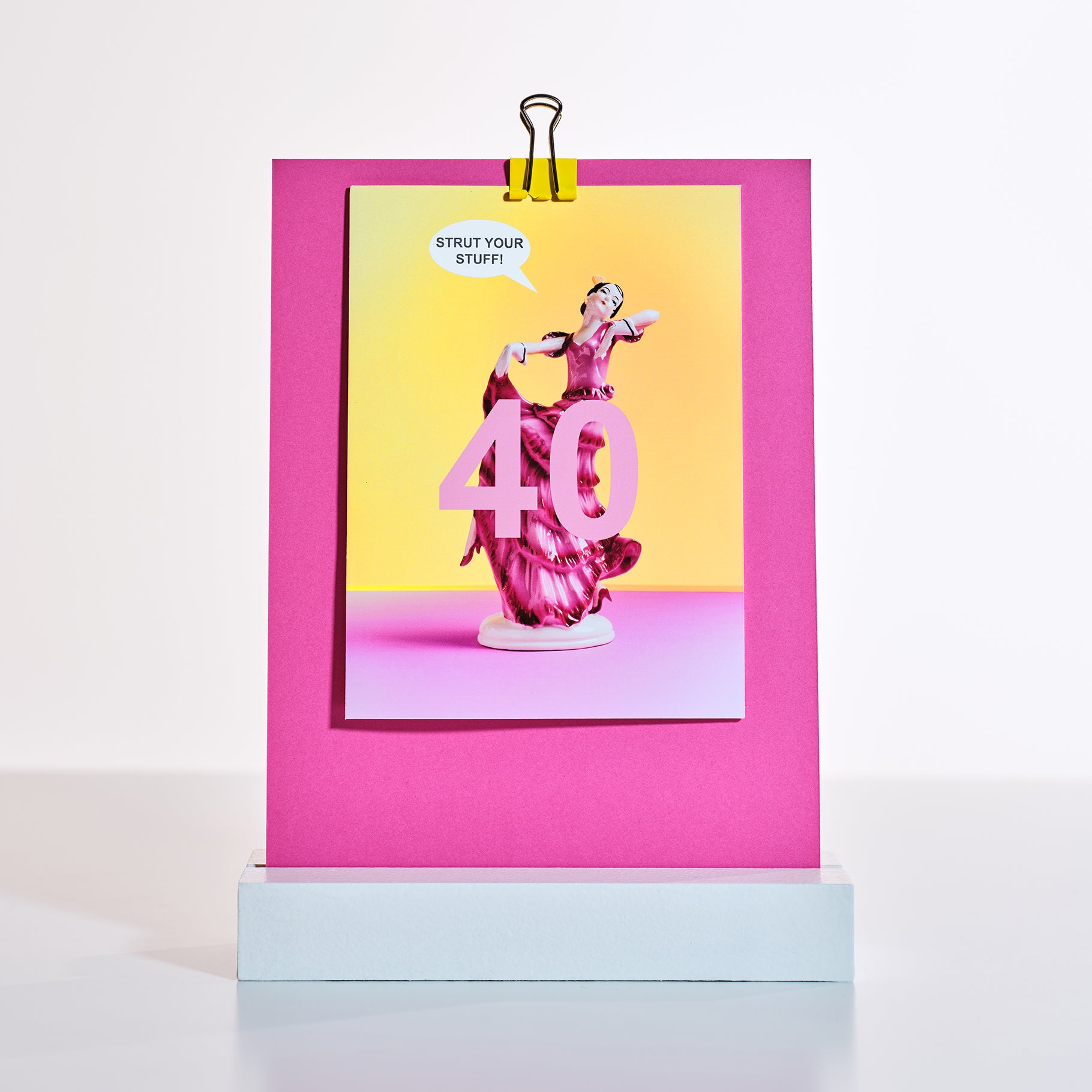 Is there a better way to celebrate the Big 4-0 than with this floor filler of a Birthday card featuring a ceramic lady who shimmies into a new decade ready and raring to "strut their stuff".