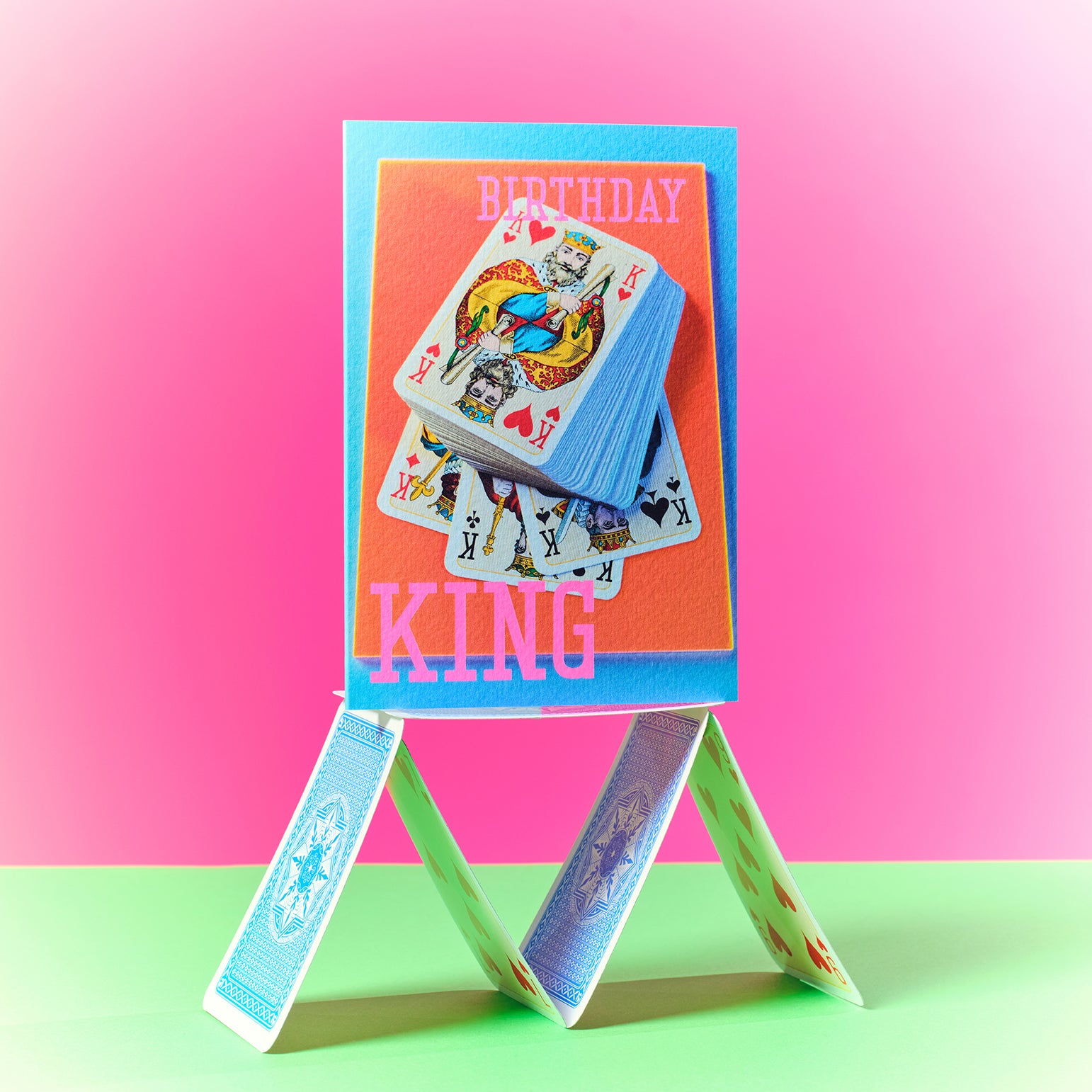 When there's somebody important to celebrate this statement card comes up trumps. A pack of playing cards proudly shows it's impressive hand celebrating the Birthday King in neon bright colours. Play your cards right with this jackpot of a card for dads, brothers, sons, husband, boyfriends and good mates.