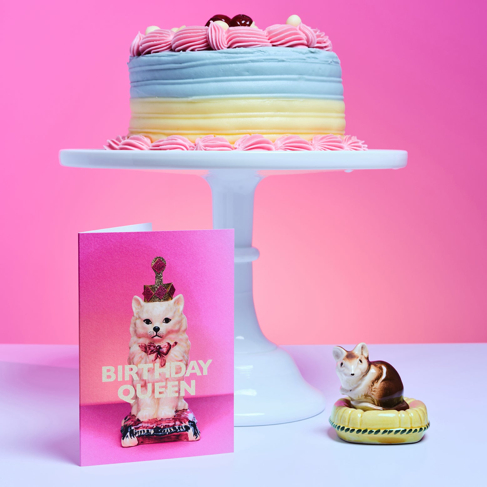 For a right royal birthday celebration choose this card featuring a vintage ceramic aristo-cat wearing a paper crown.