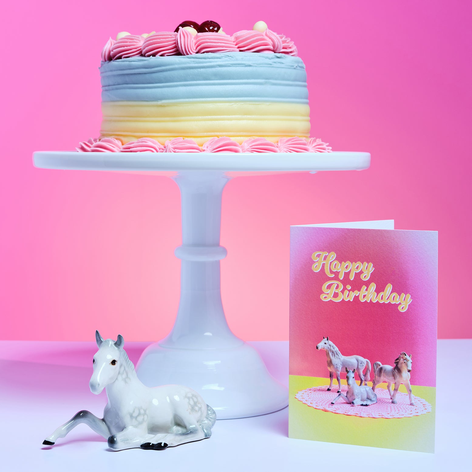 In delicious rhubarb and custard colours this vintage style card brings on all the Birthday feels.