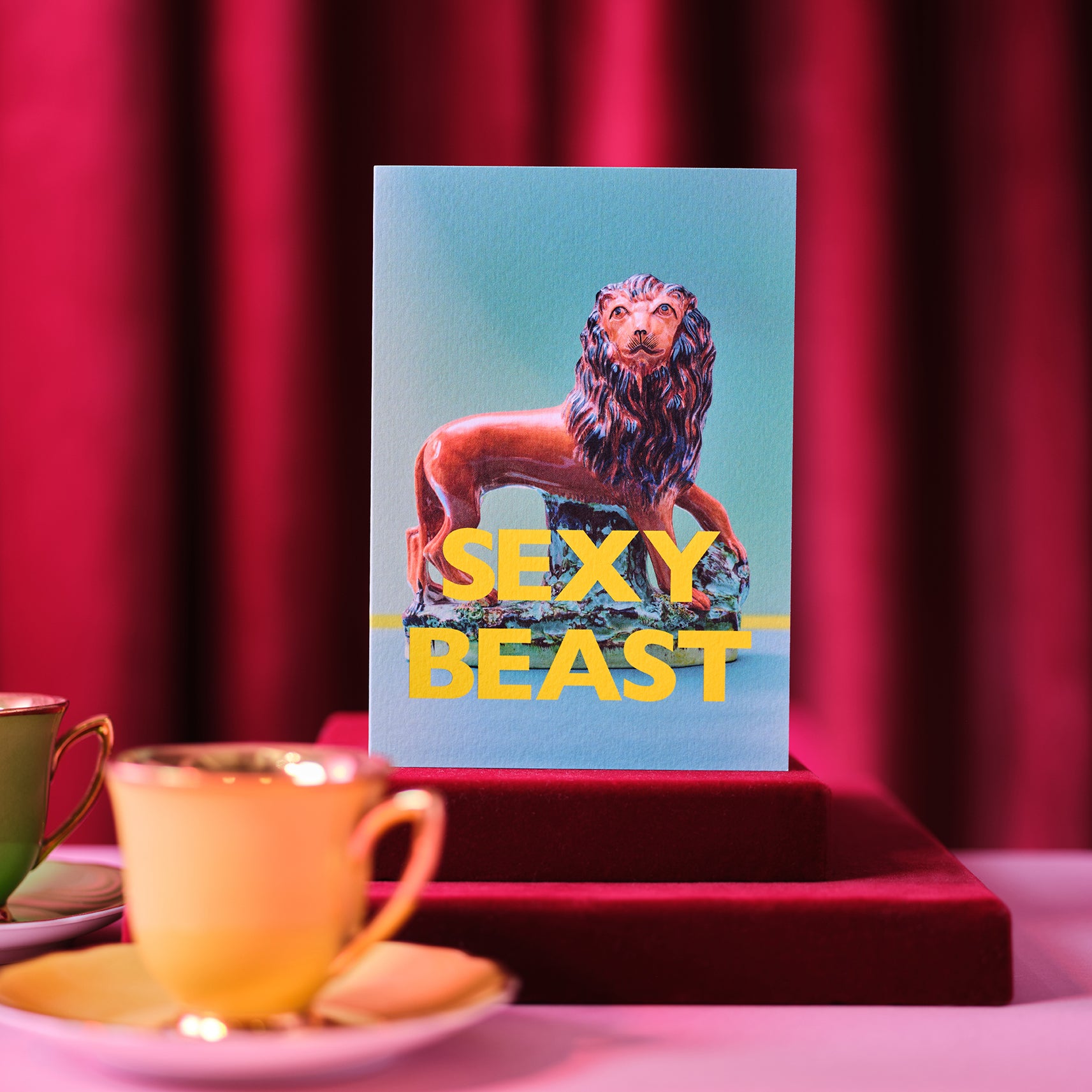 Majestic and handsome, this card featuring an antique ceramic lion is made for the Sexy Beast in your life.