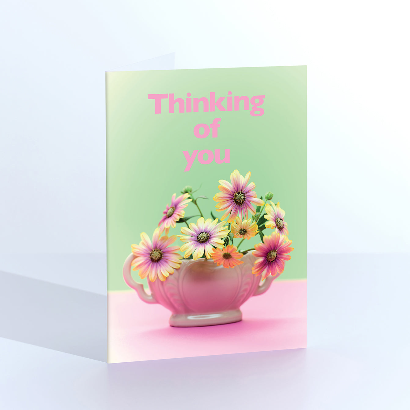 Sending a caring message of support and sympathy this card features an original photo art image of beautiful pastel stems in a vintage mantle vase.